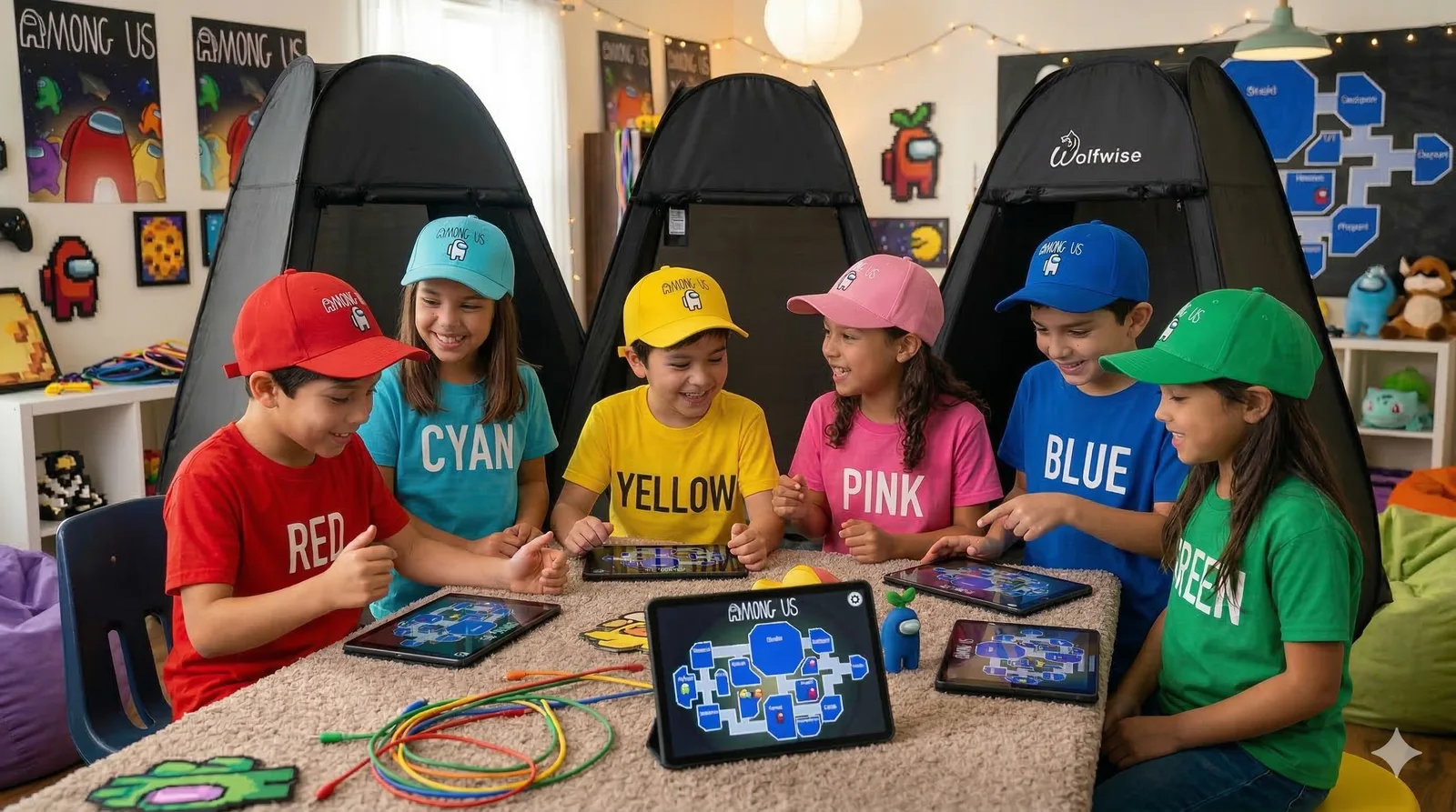 Badge, costumi, effetti sonori e scenografie: i bambini entrano davvero nel mondo di Among Us.